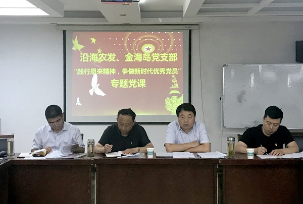 集團(tuán)黨委委員、副總經(jīng)理尤開(kāi)軍為農(nóng)發(fā)公司、金海島公司支部黨員講黨課。