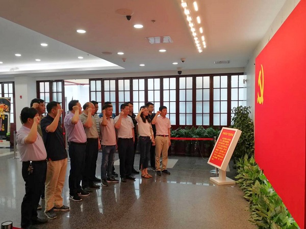海北公司黨支部黨員參觀中共一大會(huì)址,面對(duì)黨旗再次宣誓。