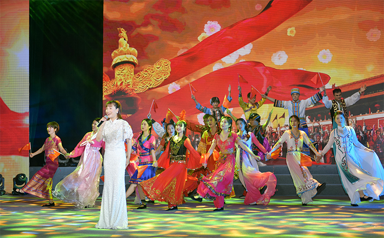 “偉大的中國共產(chǎn)黨,堅定跨越世紀(jì)滄桑,光榮邁向百年輝煌,我們是中國共產(chǎn)黨,我們獻身崇高信仰……”一曲鏗鏘有力的《前進吧,中國共產(chǎn)黨》拉開了演出序幕。悠揚婉轉(zhuǎn)的女聲獨唱《南湖的船,黨的搖籃》將現(xiàn)場帶回南湖之濱、紅船之上,見證夢想起航;《打虎上山》《軍民魚水情》等戲曲名段再現(xiàn)烽火連天的戰(zhàn)爭歲月,歷經(jīng)風(fēng)雨,蕩氣回腸的旋律猶在耳畔;藍衣舞者的飄揚袖帶引出一曲《領(lǐng)航藍?!罚e手投足間,洋溢著藍色深海中的無限希望;話劇《守島英雄》致敬開山島上不滅的燈塔,“人民楷模”王繼才的堅定信念將激勵著一代代沿海圍墾人腳踏泥濘、仰望星辰……真摯的情感、昂揚的狀態(tài)、嘹亮的歌聲、歡快的舞姿,演出期間掌聲如潮。