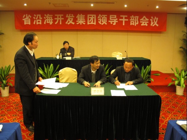 3月23日,省沿海開(kāi)發(fā)集團(tuán)在寧舉行2012年度目標(biāo)責(zé)任狀簽訂儀式,集團(tuán)公司領(lǐng)導(dǎo)、省國(guó)資委駐集團(tuán)監(jiān)事會(huì)朱愛(ài)春處長(zhǎng)、本部各部門(mén)負(fù)責(zé)人、全資及控股企業(yè)主要負(fù)責(zé)人、參股企業(yè)我方派出負(fù)責(zé)人參加了儀式。集團(tuán)公司副總經(jīng)理陳才俊、唐正東分別代表集團(tuán)公司與各全資及控股一產(chǎn)企業(yè)和部分三產(chǎn)企業(yè)簽訂了2012年度經(jīng)濟(jì)目標(biāo)責(zé)任書(shū)。副總經(jīng)理丁建明和唐正東分別與各單位簽訂了黨風(fēng)廉政建設(shè)和安全生產(chǎn)責(zé)任狀。隨后,相關(guān)單位主要負(fù)責(zé)同志分別就本單位合并管理以及領(lǐng)導(dǎo)班子充實(shí)調(diào)整后的工作情況及近期工作安排作了交流發(fā)言。梁學(xué)忠董事長(zhǎng)最后就班子建設(shè)和制度建設(shè)提出四點(diǎn)要求:一是要以民主集中制為核心,不斷加強(qiáng)各單位的制度建設(shè)。特別是涉及到三重一大的事情要進(jìn)一步建立健全集體決策和分工負(fù)責(zé)制度,充分發(fā)揮每個(gè)班子成員的作用;二是要以單位主要領(lǐng)導(dǎo)為重點(diǎn)不斷加強(qiáng)廉政建設(shè)。主要領(lǐng)導(dǎo)要主動(dòng)地、自覺(jué)地把自己的言行置于制度之內(nèi),置于監(jiān)督之中;三是要以解決問(wèn)題為目標(biāo)提高班子的戰(zhàn)斗能力,不能回避矛盾,切實(shí)提高駕馭和解決問(wèn)題的能力;四是要以思想作風(fēng)建設(shè)為重點(diǎn),提高班子的凝聚力。不僅要自己消化問(wèn)題,還要以人為本地做好職工的思想政治工作。