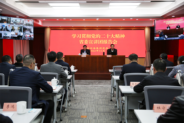 根據(jù)省委統(tǒng)一部署安排,11月18日下午,省沿海集團(tuán)黨委召開學(xué)習(xí)貫徹黨的二十大精神省委宣講團(tuán)報告會。省委宣講團(tuán)成員、南京師范大學(xué)馬克思主義學(xué)院教授委員會主任王躍教授作宣講報告,集團(tuán)黨委書記、董事長鄧東升主持報告會。