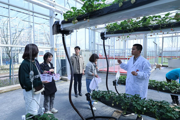“我們采用的是無土栽培技術(shù),生長全過程用電腦系統(tǒng)控制,自動(dòng)澆灌水、營養(yǎng)液,調(diào)節(jié)溫度等,很大程度上節(jié)省了人工成本,提高了產(chǎn)值效益......”傅家邊現(xiàn)代農(nóng)業(yè)科技園內(nèi),大家一邊品嘗不同品種的草莓,一邊聽工作人員講解現(xiàn)代草莓種植技術(shù),全程收獲滿滿?,F(xiàn)代農(nóng)業(yè)是集團(tuán)三項(xiàng)主業(yè)之一,此次參觀傅家邊農(nóng)業(yè)科技園讓大家更加認(rèn)識(shí)到科技興農(nóng)的重要性。