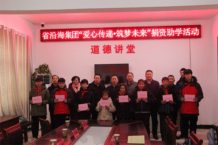 歲暮冬寒,愛心送暖。1月12日,省沿海集團組織開展2021年度“愛心傳遞·筑夢未來”捐資助學(xué)活動。集團系統(tǒng)廣大干部員工積極響應(yīng)、踴躍參與、自愿捐款、爭獻愛心,共募捐愛心款6.6萬元,所籌善款將用于幫扶灌云縣圩豐鎮(zhèn)東圩村貧困學(xué)生和困難家庭。1月15日,集團公司在灌云縣圩豐鎮(zhèn)東圩村村部舉辦簡樸的捐資助學(xué)儀式,集團公司副總經(jīng)理田鎖慶出席儀式并代表集團系統(tǒng)全體干部員工向東圩村受助學(xué)生發(fā)放助學(xué)金。