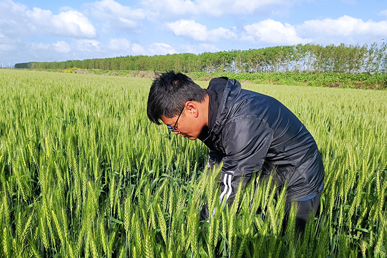 (鐘宇帆在查看小麥揚(yáng)花進(jìn)程)