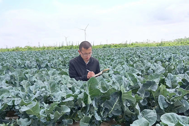 自清晨6點(diǎn)至黃昏臨落,省沿海農(nóng)發(fā)如東分公司的西蘭花養(yǎng)殖基地里,農(nóng)技員秦如意一刻不停地穿梭其中,從檢查排水通暢以減少積水到盤點(diǎn)農(nóng)藥庫存,只為趕在大雨來臨前做好各項(xiàng)準(zhǔn)備工作?!榜R上就要到西蘭花的收獲期了,要盡全力確保不受其他因素干擾?!蹦壳埃厝缫庖堰B續(xù)一個半月守在工作崗位上,時刻關(guān)注蔬菜基地的各項(xiàng)生長情況。再過不久,顆顆緊實(shí)飽滿的西蘭花將綴滿田間,為豐收的季節(jié)潑滿墨綠色油彩。