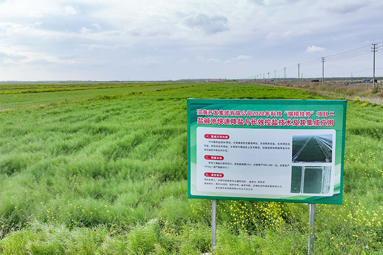 這里毗鄰黃海,部分耕地受土壤鹽分含量高、地下水埋深淺、水質(zhì)性缺水或季節(jié)性缺水等因素影響,土地鹽堿化嚴(yán)重且持久反復(fù),土壤亟待改良、地力亟待提升。據(jù)相關(guān)負(fù)責(zé)人介紹,2022年初,省沿海集團(tuán)所屬土地公司通過“揭榜掛帥”形式聯(lián)合中國科學(xué)院南京土壤研究所和集團(tuán)所屬科技公司共同開展項目研究,全力培育鹽堿地快速降鹽與長效控鹽關(guān)鍵技術(shù),著力解決作物產(chǎn)量低下或絕產(chǎn)等問題。