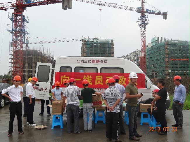 入夏以來,興化地區(qū)持續(xù)高溫。為加強安全生產(chǎn),做好防暑降溫工作,7月31日,佳豪房地產(chǎn)開發(fā)公司領(lǐng)導(dǎo)來到天水華庭風(fēng)雅苑施工現(xiàn)場,慰問高溫期間堅守在施工一線的南通五建建設(shè)工程有限公司的員工,公司領(lǐng)導(dǎo)對一線員工堅守崗位,繼續(xù)保持高昂的工作熱情表示真摯的感謝和親切的問候,并為他們送去防暑降溫慰問品,切實保障員工的身體健康,在盛夏酷暑之際給一線施工人員帶來了清涼