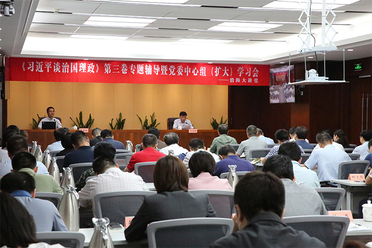 9月14日,省沿海集團(tuán)黨委舉辦《習(xí)近平談治國理政》第三卷專題輔導(dǎo)會暨黨委中心組(擴(kuò)大)學(xué)習(xí)會,聽取省委黨校教授李建柱關(guān)于深入學(xué)習(xí)貫徹《習(xí)近平談治國理政》第三卷的專題輔導(dǎo)報告。集團(tuán)黨委書記、董事長鄧東升主持會議。集團(tuán)領(lǐng)導(dǎo)班子成員,本部各部門、所屬企業(yè)黨員干部職工共360余人參加了專題輔導(dǎo)會。