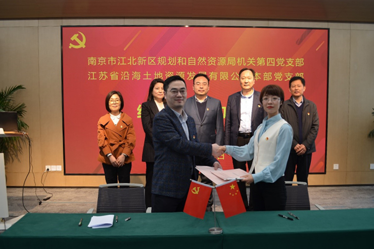 為深入貫徹落實習近平新時代中國特色社會主義思想,全面提升黨支部政治功能和組織力,不斷構(gòu)建“資源共享、優(yōu)勢互補、相互促進、共同提高”的黨建共建格局,深挖潛力,加強合作,大力推動黨建工作與業(yè)務工作深度融合,近日,土地公司本部黨支部與江北新區(qū)規(guī)劃和自然資源局機關第四黨支部在江北新區(qū)南工大產(chǎn)業(yè)園舉辦黨組織結(jié)對共建簽約儀式。
