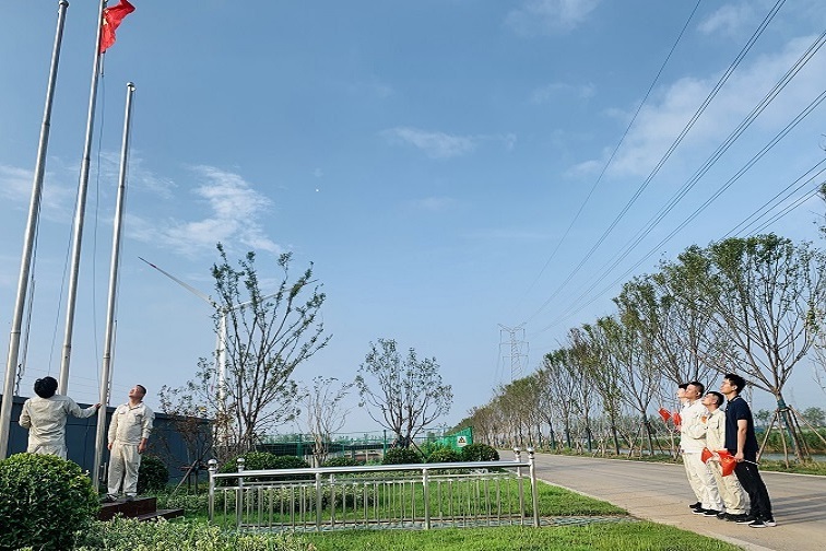 7月1日清晨6點整,迎著初升的太陽,灌云洋橋200MW漁光一體光伏平價上網(wǎng)項目現(xiàn)場,海通富公司黨支部黨員和項目運維單位工作人員整齊列隊,他們在這里舉行“慶七一”升國旗活動。嘹亮的《義勇軍進(jìn)行曲》響徹項目上空,鮮艷的五星紅旗冉冉升起,全體一線奮戰(zhàn)者們用最真摯的愛表達(dá)對黨的祝福,用堅守在一線的實際行動詮釋對黨絕對忠誠。
