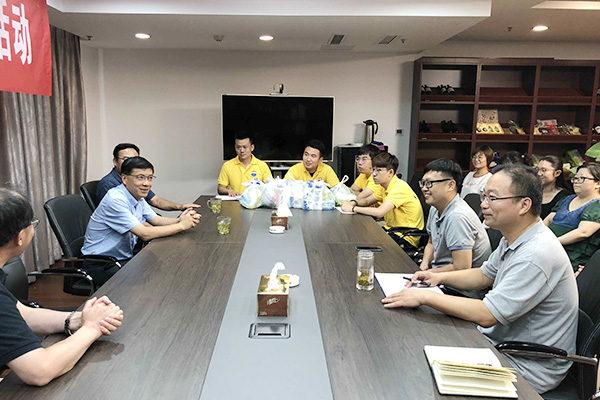 8月14日下午,集團(tuán)黨委書(shū)記、董事長(zhǎng)鄧東升帶領(lǐng)集團(tuán)黨群部門負(fù)責(zé)同志深入蘇糖副食公司、鐘山典當(dāng)公司莫愁湖東路營(yíng)業(yè)點(diǎn)看望慰問(wèn)高溫濕熱天氣堅(jiān)守生產(chǎn)經(jīng)營(yíng)一線的干部職工。集團(tuán)副總經(jīng)理趙良元陪同慰問(wèn)。