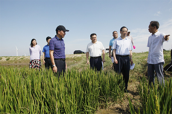 丁建奇一行實(shí)地察看了條北11、12區(qū)自主經(jīng)營(yíng)項(xiàng)目、條北13~16區(qū)西側(cè)種養(yǎng)結(jié)合項(xiàng)目、生態(tài)公園一期工程項(xiàng)目以及水產(chǎn)養(yǎng)殖管理中心項(xiàng)目。在條北11、12區(qū)自主經(jīng)營(yíng)項(xiàng)目現(xiàn)場(chǎng),丁建奇總經(jīng)理詳細(xì)了解了鹽堿地改良以及農(nóng)業(yè)生產(chǎn)組織情況,要求東臺(tái)公司要抓好田間管理,提前做好稻田收割和銷(xiāo)售準(zhǔn)備工作,確保項(xiàng)目區(qū)水稻長(zhǎng)得好、收得好、賣(mài)得好,取得自主經(jīng)營(yíng)項(xiàng)目首場(chǎng)勝利。要優(yōu)化生產(chǎn)組織方式和管理方式,繼續(xù)做好鹽堿地改良試驗(yàn),收集好生產(chǎn)數(shù)據(jù)信息和土壤監(jiān)測(cè)信息,不斷總結(jié)提高土壤快速改良技術(shù)。