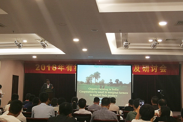 在為期兩天半的理論培訓中,來自美國威斯康星大學、印度國家農業(yè)發(fā)展委員會、農業(yè)部全國農技推廣中心、中國農業(yè)科學院、農業(yè)部南京農業(yè)機械化研究所、南京農業(yè)大學等多家高校、科研院所的教授、研究員傳經送寶,其重點圍繞國內外有機農場發(fā)展現狀及相關政策、農作物種植技術、病蟲草害有機防治及肥料管理方案、智慧農場運營及種植管理體系、農產品銷售方式等主題進行培訓及研討,細化為“現代農機裝備與有機農業(yè)機械化生產技術”、“有益微生物驅動的全程有機、綠色果蔬種植體系”、“有益微生物驅動的有機種植體系在水稻上的應用”、“有益微生物驅動的全程水稻有機種植體系”、“有機種植蔬菜育苗技術”、“互聯(lián)網+思維下的智慧農業(yè)”、“稻田小龍蝦生態(tài)高效種養(yǎng)技術”等12個專題講座。會議期間,來自全國各地的4家單位分享其有機種植經驗,會務組組織與會代表參觀有機農場。