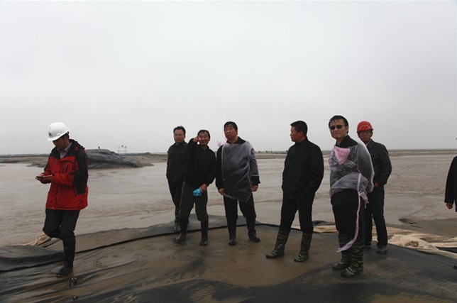 梁學(xué)忠董事長(zhǎng)表示,徐立副秘書長(zhǎng)一行深入條子泥匡圍工程現(xiàn)場(chǎng),躬親踐行“三解三促”活動(dòng),是對(duì)我們工作的極大支持。條子泥匡圍工程是我省第一個(gè)嚴(yán)格按照基本建設(shè)規(guī)范實(shí)施的灘涂圍墾工程,一期工程于今年2月10日正式動(dòng)工,目前主體工程已經(jīng)完成,完成吹沙袋土方62萬(wàn)方,占計(jì)劃的83%;完成堤芯沙土方72萬(wàn)方,占計(jì)劃的50.7%;鋪設(shè)軟體排40.5萬(wàn)平米,占計(jì)劃的135%,初步形成陸域面積3.3萬(wàn)畝。目前,我們正在組織協(xié)調(diào)設(shè)計(jì)、施工、監(jiān)理等參建單位以及相關(guān)科研院所,加強(qiáng)對(duì)條南片區(qū)龍口附近水文情況的勘測(cè),對(duì)合龍方案進(jìn)行深入研究和技術(shù)創(chuàng)新,計(jì)劃于5月中旬實(shí)現(xiàn)龍口合龍。我們將按照徐立副秘書長(zhǎng)此次在條子泥匡圍工程“三解三促”活動(dòng)中提出的要求,進(jìn)一步統(tǒng)一思想,狠抓工作落實(shí),全力推進(jìn)條子泥工程建設(shè),為全省沿海開發(fā)做出新的更大的貢獻(xiàn),向省委、省政府交上一份完美滿意的答卷!