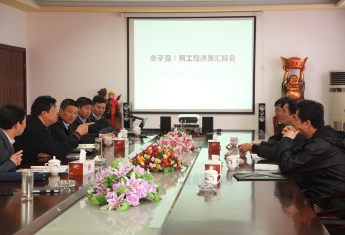 梁學(xué)忠董事長介紹條子泥I期工程進(jìn)展情況