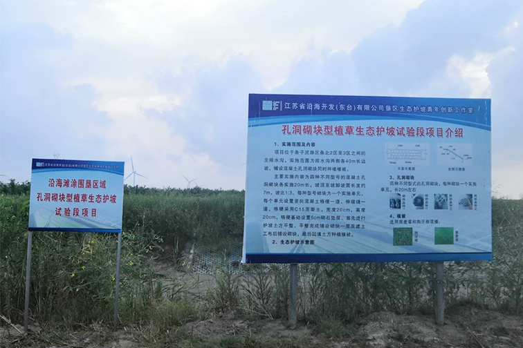 沿海集團農(nóng)業(yè)企業(yè)都位于沿海灘涂圍墾區(qū)域,土質(zhì)均為粉砂土,粉砂土顆粒細(xì)小,遇水易流失,如何提高護坡工程效益,降低溝渠清淤、護坡維修的周期頻率,節(jié)約維修成本,更好的服務(wù)墾區(qū)農(nóng)業(yè)生產(chǎn)是墾區(qū)生態(tài)護坡青年創(chuàng)新工作室主攻的問題。工作室根據(jù)墾區(qū)粉砂土的特性,因地制宜針對灘涂圍墾區(qū)域,結(jié)合理論研究,確定了實際護坡效果好的砌塊型式和適合墾區(qū)鹽堿土生長的植被,形成了《灘涂圍墾區(qū)域孔洞砌塊型植草護坡設(shè)計施工導(dǎo)則》,用于指導(dǎo)墾區(qū)生態(tài)護坡的前期設(shè)計和具體施工。