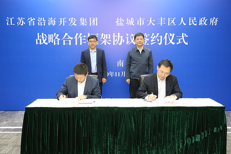 集團(tuán)公司總經(jīng)理周金陽(yáng)與大豐區(qū)委副書(shū)記陳允春代表雙方簽署戰(zhàn)略合作框架協(xié)議。省沿海集團(tuán)黨委副書(shū)記姜?jiǎng)P、副總經(jīng)理尤開(kāi)軍,集團(tuán)和大豐區(qū)相關(guān)負(fù)責(zé)人參加簽約活動(dòng),并就合作事宜進(jìn)行了深入?yún)f(xié)商。