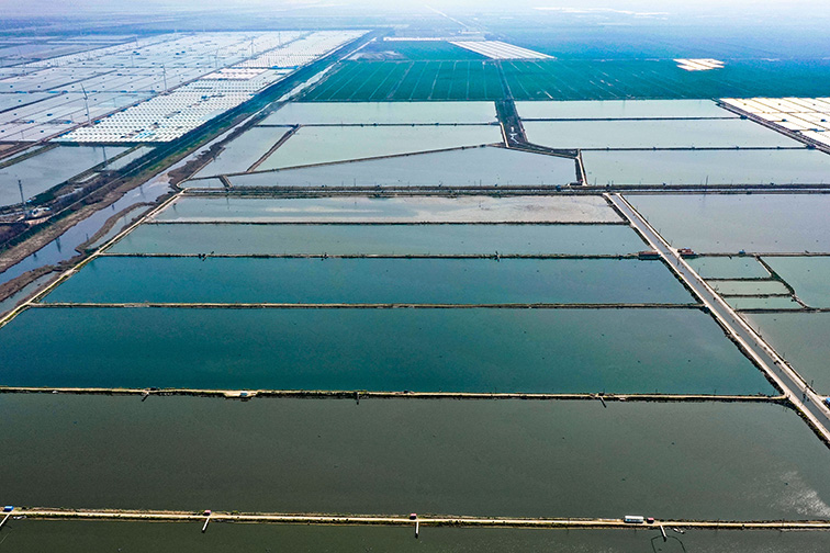 “東臺(tái)的魚塘自主經(jīng)營(yíng)面積有5000余畝,以鮰魚為主,花白鰱為輔,因水含鹽量較高,魚的肉質(zhì)緊實(shí)細(xì)膩,水底沙土沒有淤泥,生長(zhǎng)在這里的魚自然不沾土腥味,鮮嫩肥美?!笔⊙睾<瘓F(tuán)東臺(tái)公司技術(shù)管理員陳德舉是集團(tuán)引進(jìn)的專業(yè)型人才之一,為保障成魚品質(zhì),他所在的團(tuán)隊(duì)長(zhǎng)期致力于綠色生態(tài)養(yǎng)殖技術(shù)的創(chuàng)新與突破。