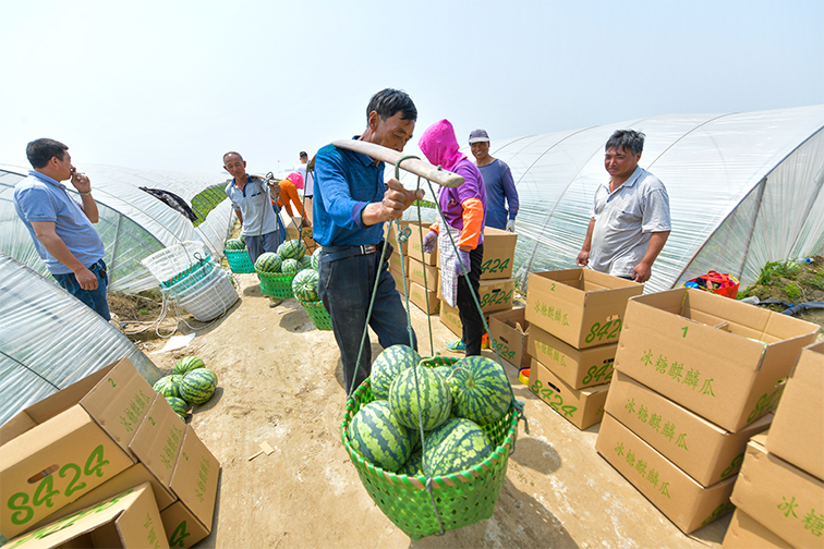 去年冬季至今,倉(cāng)東公司已陸續(xù)完成瓜棚架設(shè)、品種育苗、藤蔓打理、覆膜除草和授粉疏果等一系列工序,頭茬8424、全美4K、浙蜜8號(hào)、浙蜜10號(hào)等質(zhì)優(yōu)品種西瓜已集中上市。