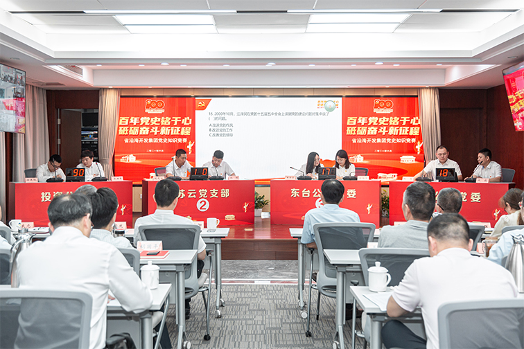 為進(jìn)一步豐富黨史學(xué)習(xí)教育內(nèi)容,深情回顧黨的光輝歷程,激勵(lì)集團(tuán)廣大干部員工賡續(xù)紅色基因、傳承優(yōu)良傳統(tǒng),營(yíng)造學(xué)黨史、知黨情、跟黨走的濃厚氛圍,2021年6月18日上午,省沿海集團(tuán)組織開展“百年黨史銘于心 砥礪奮斗新征程”黨史知識(shí)競(jìng)賽活動(dòng)。集團(tuán)領(lǐng)導(dǎo)班子成員、本部各部門負(fù)責(zé)人、各基層黨組織書記以及本部全體黨員在主會(huì)場(chǎng)參加活動(dòng)。所屬企業(yè)設(shè)立分會(huì)場(chǎng),通過視頻會(huì)議系統(tǒng)觀看。