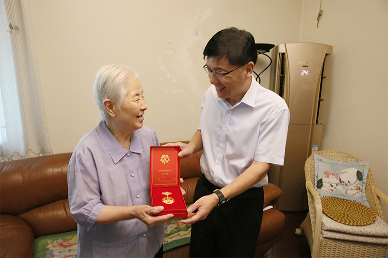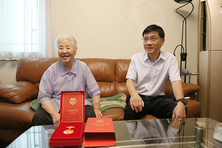 集團黨委書記、董事長鄧東升來到柳敏家中,與其親切交談,仔細詢問她的生活起居情況和身體健康狀況。1928年出生的柳敏已有93歲高齡,當看到老人身體硬朗,子女常伴身邊盡孝,鄧東升非常欣慰的表示,集團黨委沒有忘記老黨員長期以來的無私奉獻和為黨的事業(yè)發(fā)展作出的貢獻,祝愿她健康長壽,保重身體,安享幸福晚年。當了解到柳敏老人前往定點醫(yī)院體檢路程較遠,行動不便時,鄧東升當即表示,集團有關部門會做好對接,安排專人專車接送老人,周全保障老人體檢。同時囑咐隨行人員要時刻把老黨員的冷暖掛在心頭,多多了解老同志的困難和需求,主動為他們排憂解難,及時反饋,竭盡全力為他們解難題、辦實事,讓他們充分感受到組織的溫暖。鄧東升向柳敏頒發(fā)“光榮在黨50年”紀念章時表示,集團黨委執(zhí)行中共中央決定,向黨齡達到50周年、一貫表現(xiàn)良好的黨員致以崇高的敬意,讓老黨員深切感受到以習近平同志為核心的黨中央的關懷和溫暖。