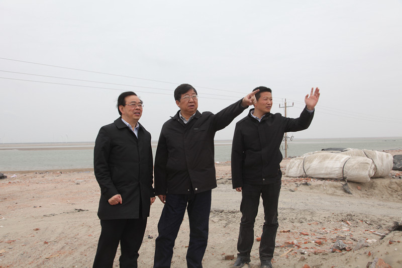 4月18日,集團(tuán)公司董事長(zhǎng)、黨委書記梁學(xué)忠來(lái)到條子泥匡圍一期工程施工現(xiàn)場(chǎng),檢查工程建設(shè)情況,丁建奇總經(jīng)理、陳才俊副總經(jīng)理和東臺(tái)公司總經(jīng)理周金陽(yáng)等參加檢查。