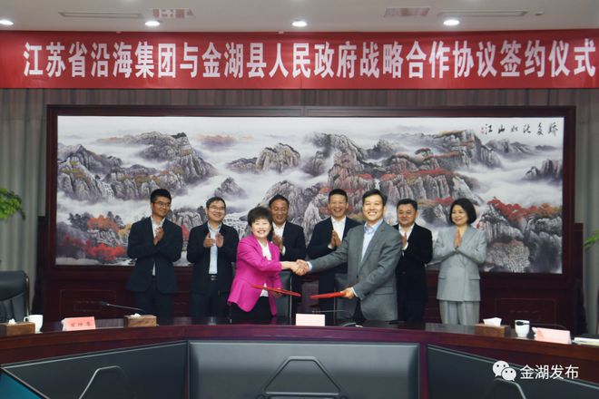 省沿海集團(tuán)副總經(jīng)理周明勇與金湖縣副縣長(zhǎng)顧海蕓代表雙方簽署了《戰(zhàn)略合作協(xié)議》。