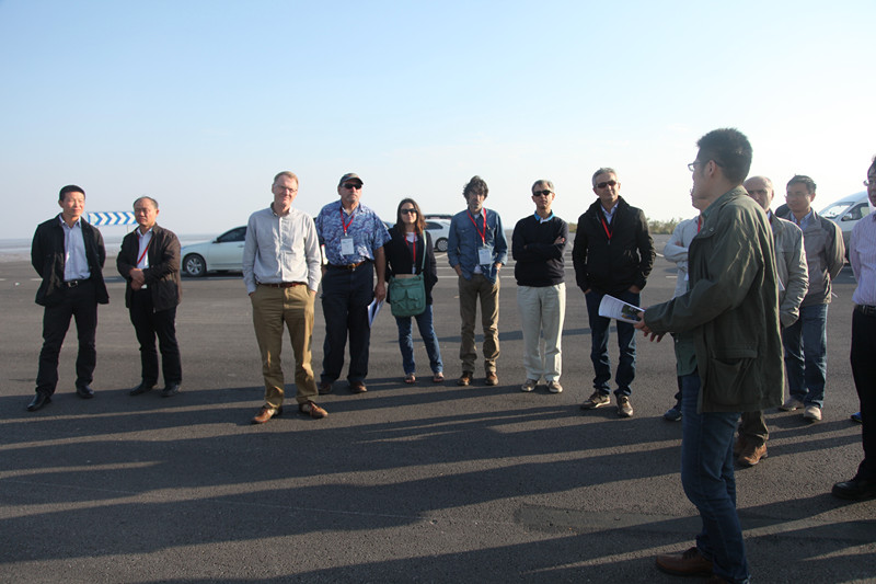 10月14日,參加第四屆“河口日”國際學(xué)術(shù)研討會的各位專家及學(xué)者來到條子泥高涂養(yǎng)殖圍墾項(xiàng)目現(xiàn)場,參觀現(xiàn)場工程建設(shè)、考察條子泥面域形態(tài)并充分開展調(diào)研。集團(tuán)公司黨委委員、東臺公司總經(jīng)理周金陽,東臺公司副總經(jīng)理王海祥等在現(xiàn)場接待了考察團(tuán)一行。