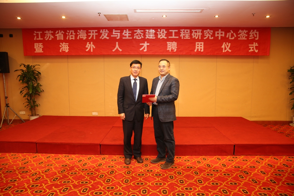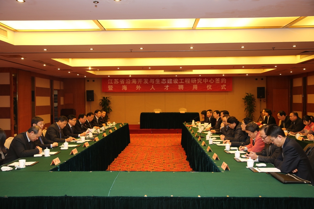 12月17日上午,集團(tuán)公司與河海大學(xué)聯(lián)合舉行了江蘇省沿海開發(fā)與生態(tài)建設(shè)工程研究中心簽約暨海外人才聘用儀式。省委組織部干部四處處長(zhǎng)董德,河海大學(xué)校長(zhǎng)徐輝、副校長(zhǎng)唐洪武、海外專家代表李凌,集團(tuán)董事長(zhǎng)鄧東升、總經(jīng)理丁建奇、副總經(jīng)理唐正東,黨委委員、東臺(tái)公司總經(jīng)理周金陽(yáng)以及省國(guó)資委監(jiān)事席寧等出席儀式。儀式由丁建奇總經(jīng)理主持。