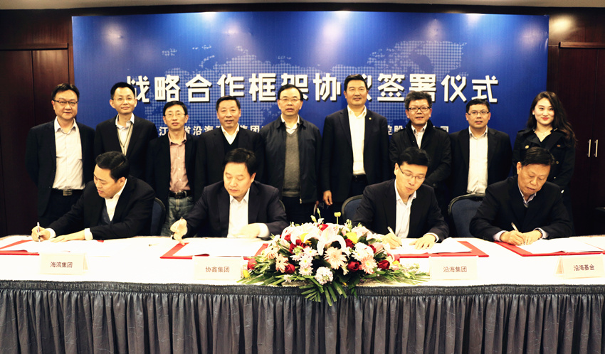 2016年4月6日,江蘇省沿海開(kāi)發(fā)集團(tuán)有限公司、協(xié)鑫(集團(tuán))控股有限公司、江蘇沿海產(chǎn)業(yè)投資基金以及江蘇海濱投資集團(tuán)有限公司在寧正式簽署《戰(zhàn)略合作框架協(xié)議》。集團(tuán)公司董事長(zhǎng)鄧東升出席儀式并代表集團(tuán)公司簽約。集團(tuán)公司總經(jīng)理丁建奇、副總經(jīng)理姜?jiǎng)P、總經(jīng)理助理徐向紅出席儀式。協(xié)鑫集團(tuán)董事長(zhǎng)朱共山、沿?;饒?zhí)行事務(wù)合伙人委派代表徐錦榮、海濱投資董事長(zhǎng)許興祥代表各自企業(yè)出席簽約。