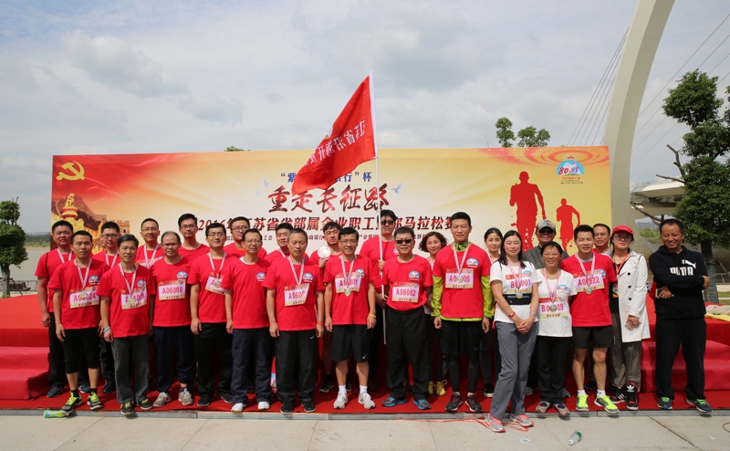 在紅軍長征勝利80周年紀念日即將到來之際,由省國資委、省總工會主辦的“紫金農(nóng)商銀行”杯2016年江蘇省省部屬企業(yè)職工“重走長征路”迷你馬拉松賽于10月9日上午在南京舉行。集團鄧東升董事長、姜凱副總經(jīng)理、田鎖慶副書記、周金陽副總經(jīng)理等近30名干部員工組成團隊參賽。