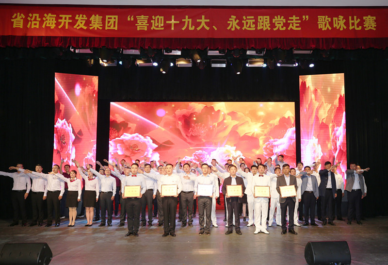 10月16日下午,省文聯(lián)劇場燈光璀璨、歌聲嘹亮,省沿海開發(fā)集團“喜迎十九大·永遠跟黨走”歌詠比賽在這里隆重舉行。集團公司領導、退休老領導、本部全體員工、駐寧企業(yè)員工、13支參賽代表隊員工共200多人觀看了歌詠比賽。