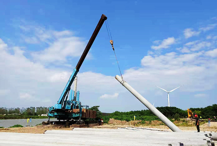 8月19日,大豐區(qū)三龍鎮(zhèn)龍南村斗龍港河南岸省沿海農(nóng)發(fā)“糧食科技產(chǎn)業(yè)園”項(xiàng)目碼頭施工現(xiàn)場(chǎng),二十多根PHC管樁整齊排列,一臺(tái)龐大的靜壓樁機(jī)穩(wěn)坐河邊,伴隨著陣陣轟鳴,緩緩吊起10米長(zhǎng)的管樁進(jìn)行沉樁施工。不遠(yuǎn)處兩個(gè)班組工人正頭頂烈日,加緊進(jìn)行鋼筋預(yù)制、焊接作業(yè)。
