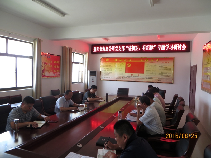 8月25日下午,金海島公司黨支部在辦公樓一樓會議室舉行了“講規(guī)矩,有紀(jì)律”專題學(xué)習(xí)研討會,支部書記薛太華同志主持了會議。會議首先組織大家集體學(xué)習(xí)了《中國共產(chǎn)黨章程(總則)》以及《習(xí)近平總書記系列重要講話讀本(實干才能夢想成真)》,之后,由陸中陽同志、王成同志以及王東同志就其最近的兩學(xué)一做學(xué)習(xí)情況,發(fā)表自己對“講規(guī)矩,有紀(jì)律”的感想。