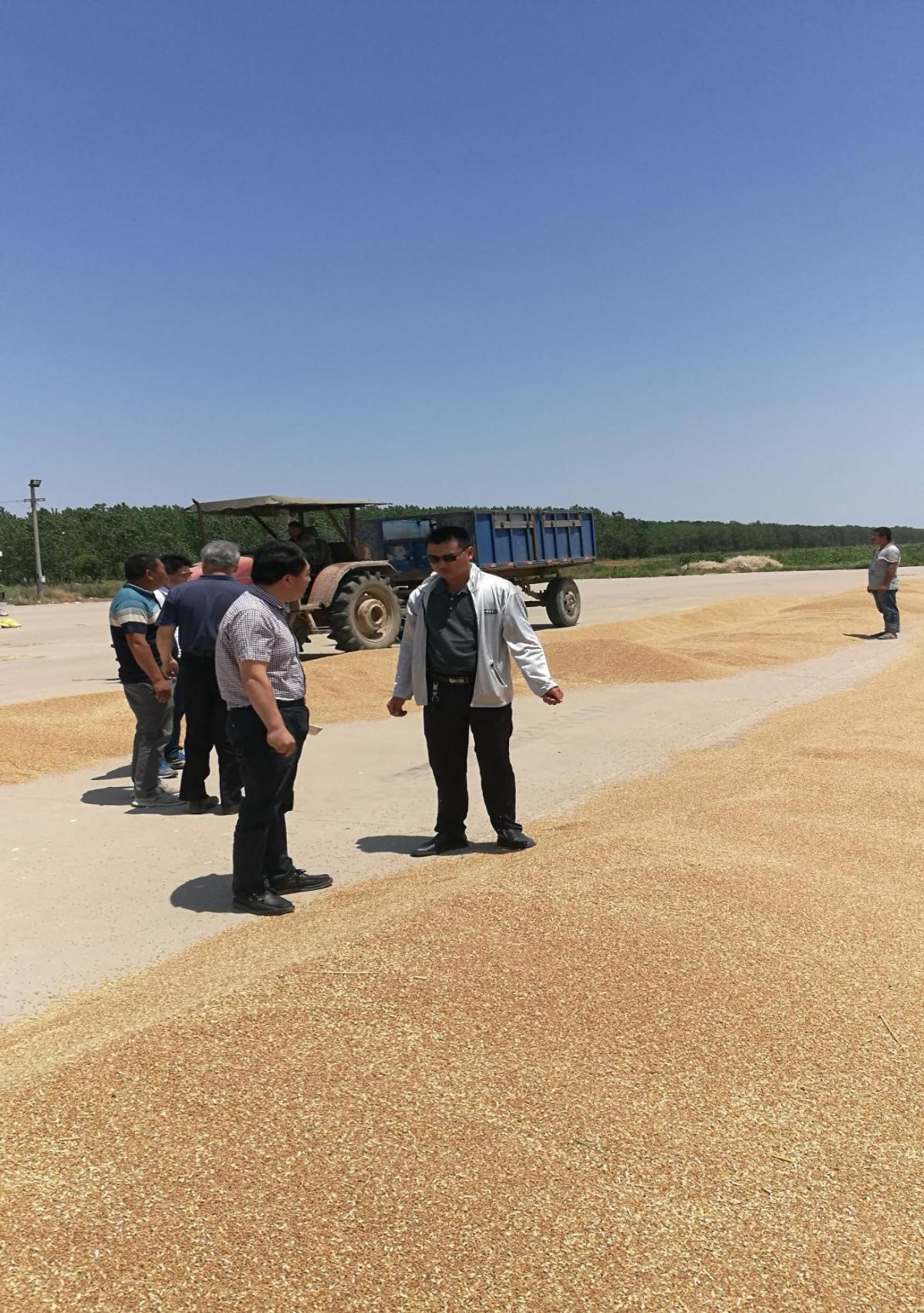 收割期期間,農(nóng)發(fā)公司主要領(lǐng)導(dǎo)和金海島公司領(lǐng)導(dǎo)全程現(xiàn)場指揮和督戰(zhàn)并且每晚到各個現(xiàn)場慰問,事業(yè)部全體員工及金海島抽調(diào)人員全力奮戰(zhàn);從田頭檢查到場頭接收、檢測、出庫,包括運(yùn)輸路途中的監(jiān)督,不分白天黑夜都做到了事無巨細(xì)、全程監(jiān)管。最終趕在大雨來臨之前實(shí)現(xiàn)糧食顆粒歸倉。