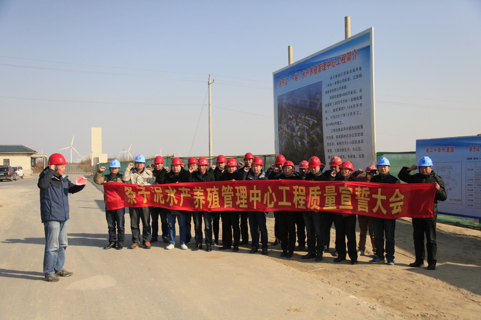 2018年2月7日,為進(jìn)一步強(qiáng)化質(zhì)量意識(shí),鑄就精品工程,東臺(tái)公司組織開(kāi)展條子泥水產(chǎn)養(yǎng)殖管理中心工程質(zhì)量宣誓活動(dòng)。常務(wù)副總經(jīng)理王海祥帶領(lǐng)公司領(lǐng)導(dǎo)班子、項(xiàng)目管理人員和各參建單位現(xiàn)場(chǎng)負(fù)責(zé)人、施工班組長(zhǎng)一起鄭重宣誓:在條子泥水產(chǎn)養(yǎng)殖管理中心項(xiàng)目建設(shè)中,牢記質(zhì)量標(biāo)準(zhǔn),明確質(zhì)量目標(biāo),規(guī)范質(zhì)量管理,嚴(yán)格質(zhì)量控制。杜絕不良材料進(jìn)入工程,保證工程不出次品,不留隱患,以實(shí)際行動(dòng)確保工程質(zhì)量?jī)?yōu)良。