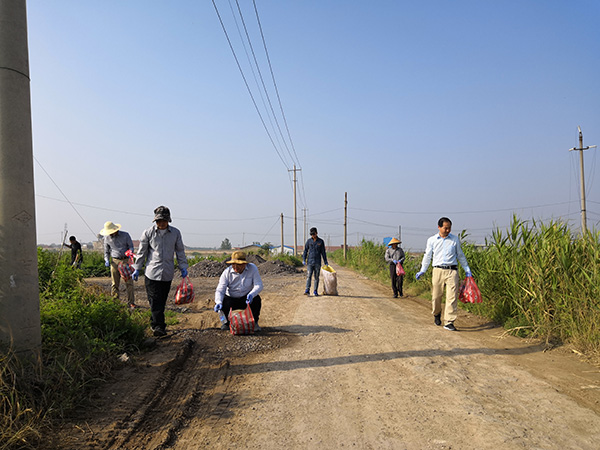 隨后,志愿者服務(wù)隊按既定路線從公司出發(fā),沿中心路由南至北依次路過東區(qū)一排、二排、三排,全程約3km。志愿者沿路撿拾白色垃圾、清理路面雜物,并向養(yǎng)殖戶發(fā)放《致公司水產(chǎn)養(yǎng)殖戶的一封信》。