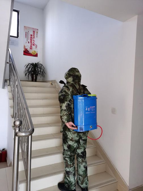 前線有青年員工的身影,“后方”也如此。凌洋公司需進(jìn)行全面消毒,也是青年員工主動(dòng)承擔(dān)起艱苦的工作,身穿“隔離服”,后背大藥筒,看似笨重,卻成了全場(chǎng)最“帥”的那一個(gè):