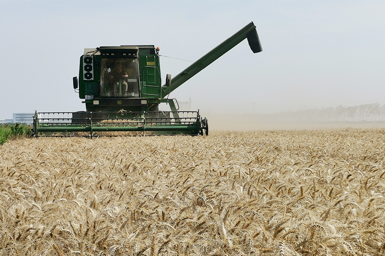 金穗卷起千層浪,又是一年農(nóng)忙時(shí)。放眼望去,聯(lián)合收割機(jī)來回穿梭于自營小麥田,一束束麥穗瞬間變成一顆顆飽滿的麥粒,隨風(fēng)跳躍。農(nóng)機(jī)逐浪,顆粒歸倉,倉東公司自營小麥喜獲豐收。