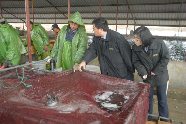 11月21日,鹽城市出入境檢驗(yàn)檢疫局檢查組到金東臺(tái)農(nóng)場(chǎng)檢查出口水產(chǎn)品質(zhì)量安全示范區(qū)日常監(jiān)管工作。檢查小組認(rèn)真聽(tīng)取了質(zhì)量安全示范區(qū)建設(shè)領(lǐng)導(dǎo)小組副組長(zhǎng)、金東臺(tái)農(nóng)場(chǎng)場(chǎng)長(zhǎng)任之華的匯報(bào)。隨后,檢查小組仔細(xì)察看了日常監(jiān)管記錄,并冒雨親赴各塘口檢查,悉心詢問(wèn)投入品使用情況以及具體的監(jiān)管措施,通報(bào)了國(guó)家對(duì)投入品最新的監(jiān)管要求,對(duì)個(gè)別細(xì)節(jié)問(wèn)題提出了整改意見(jiàn)。最后,檢查小組對(duì)日常監(jiān)管整體工作表示滿意,并指出,示范區(qū)的監(jiān)管方式是行之有效的,通過(guò)規(guī)范、合理、嚴(yán)格的質(zhì)量安全監(jiān)管,示范區(qū)的放心農(nóng)產(chǎn)品大大豐富了居民的菜籃子。